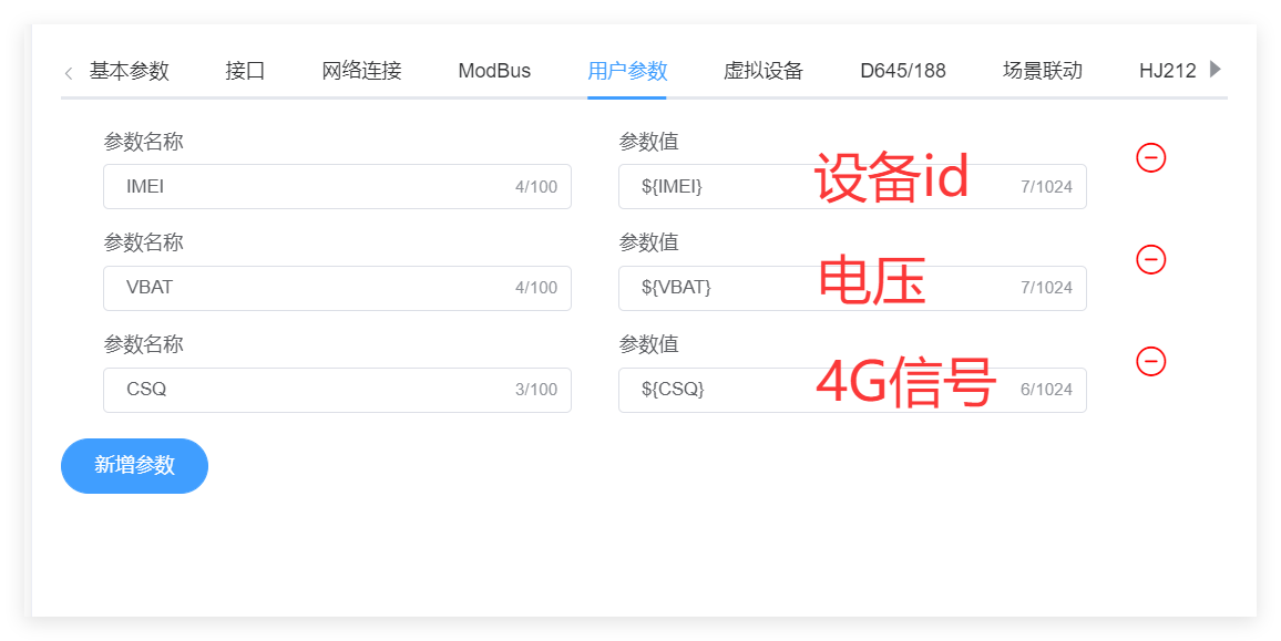如何利用用户参数魔法值的形式将电压、信号、卡号、时间等参数和modbus或645采集到的数据一起上传