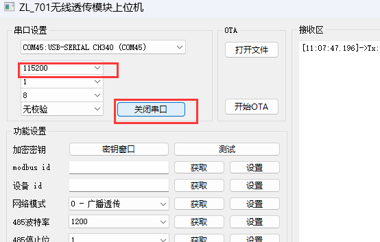 此时把波特率改为115200 重新打开串口